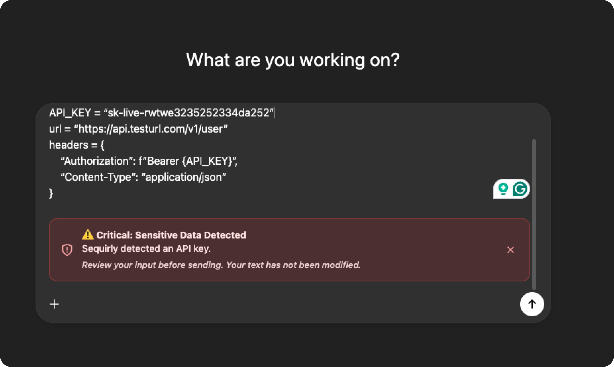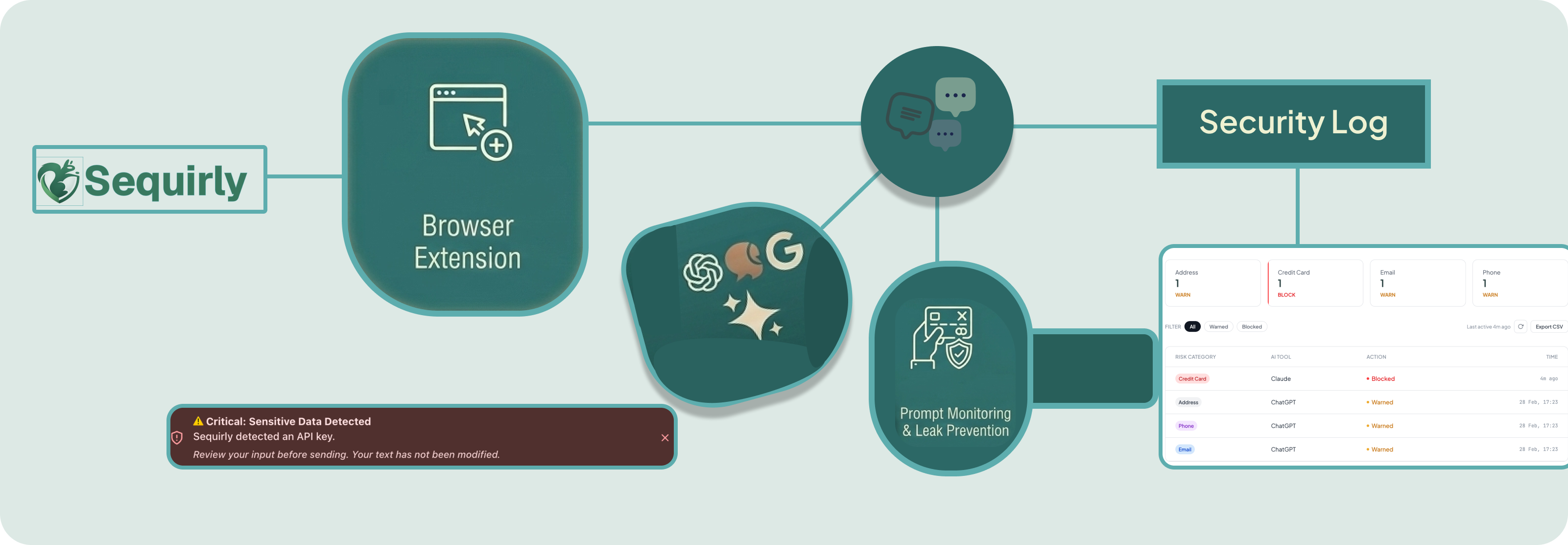 Sequirly silently scans every prompt, stopping leaks in their tracks.